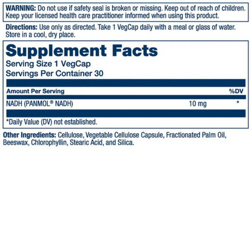 View full detailsSolaray NADH 30 Capsules Solaray NADH 10mg delivers a potent boost to your body’s natural energy systems with just one VegCap per day. This microen...